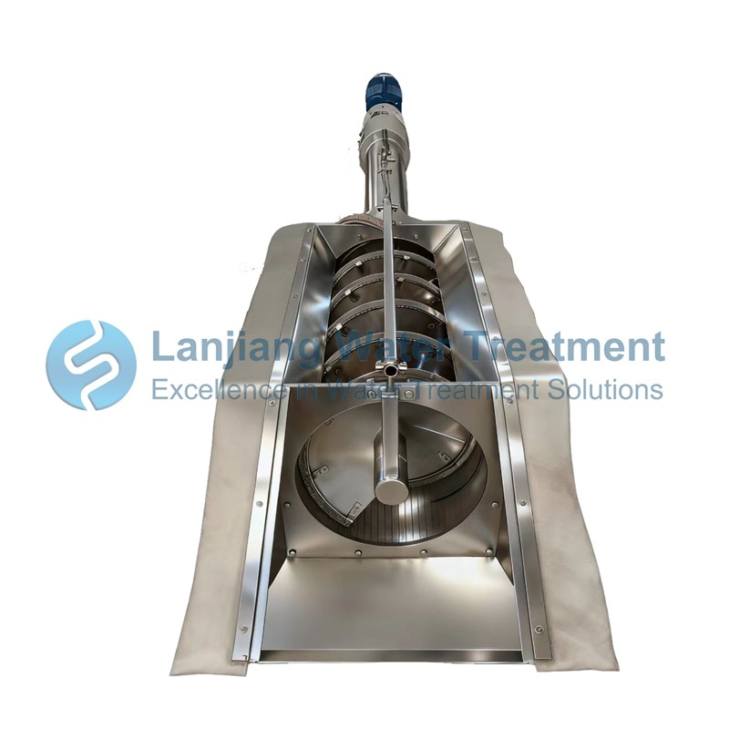 Filtration Stage: Wastewater flows through a cylindrical screen basket (made of wedge-wire or perforated plate). Solids (floating, precipitated, or suspended) are retained on the inner surface of the screen.